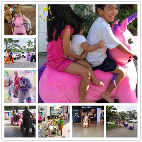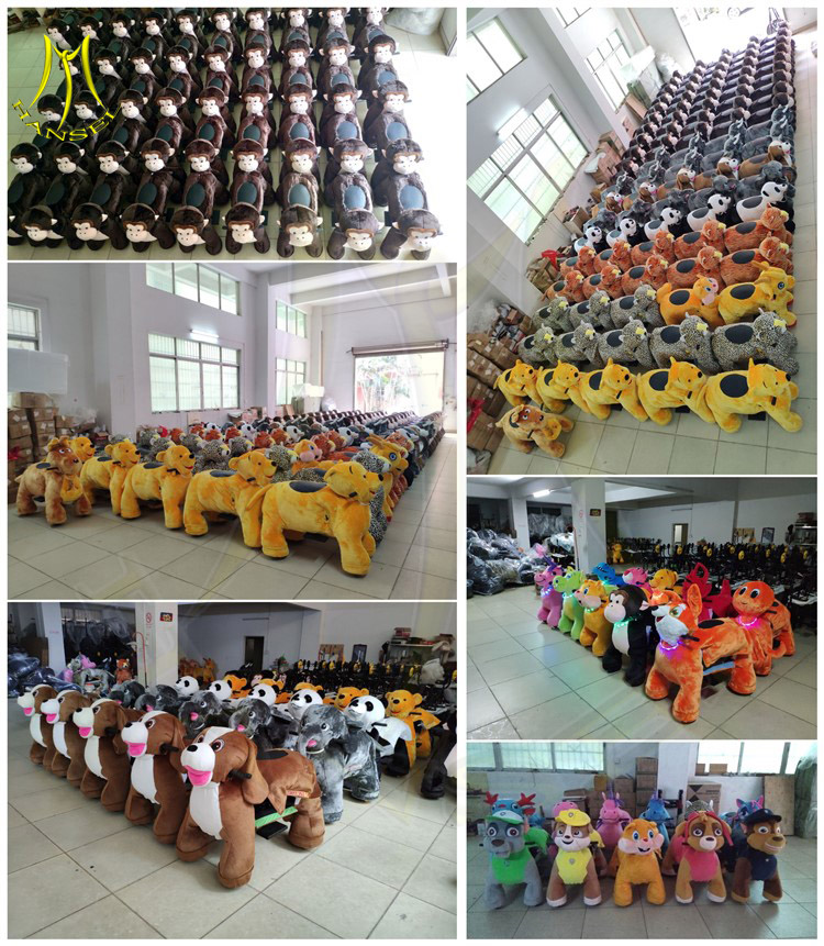 Plush motorized animal scooters is a one coin operated or non coin operated electric battery rides which look like real animals can moving with music. They work with rechargeable batteries, can go forward , turn left and right . They operate easily by the push of a button and move at walking speed making them easy to keep up with. They are the current trend for child amusement. These electric motorized animals are mobile and allow children to ride the animal of their preference in parks, shopping centers, game centers, playgrounds and zoos at a safe and regulated speed of preference. People in all ages like riding on it. Kids need to be 5 or 6 to ride on their own, but younger kids can ride with their siblings or with you. Both children and adults may ride these animals at the same time. The delight in kids is absolutely guaranteed! Most of our customers would like to share their happy time with us.